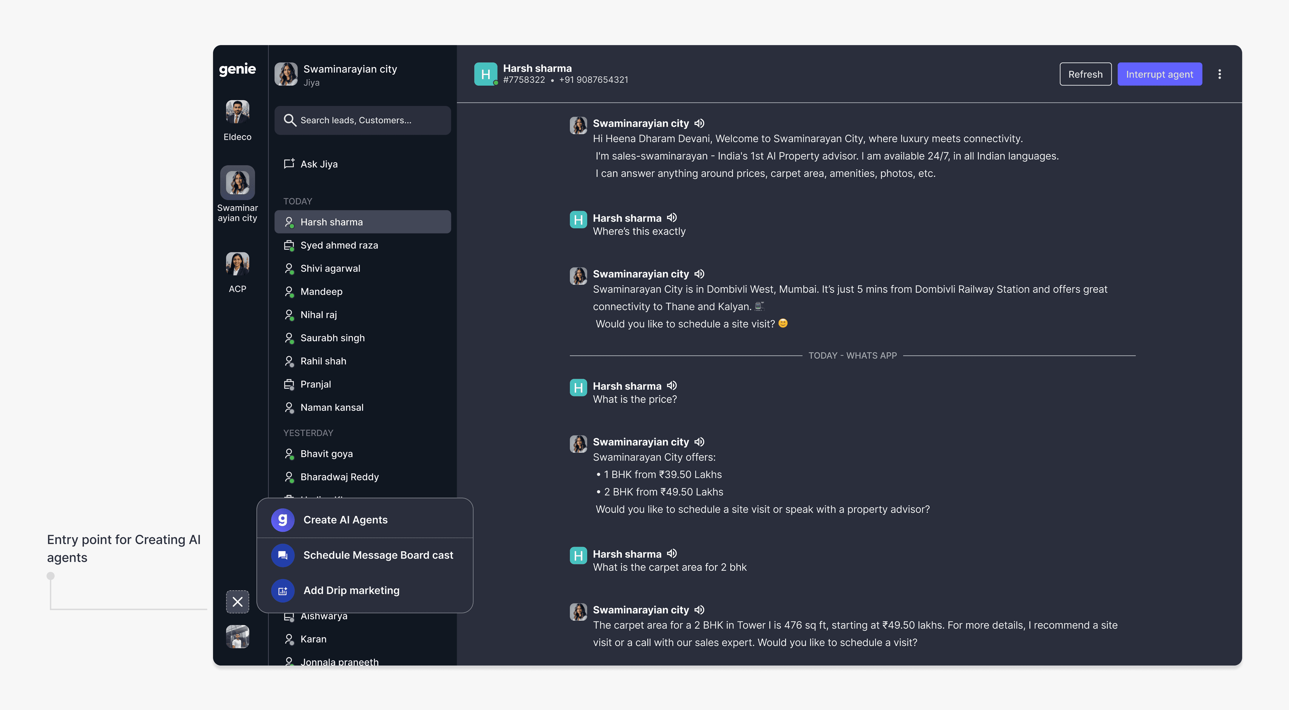 To address these pain points, we introduced Anarock Genie — an AI-powered platform designed to create intelligent AI agents that answer lead queries 24/7, share project information, and route high-intent leads directly to sales agents. This eliminates repetitive queries, reduces human agent workload, and enables them to focus on qualified leads, helping them close deals faster.